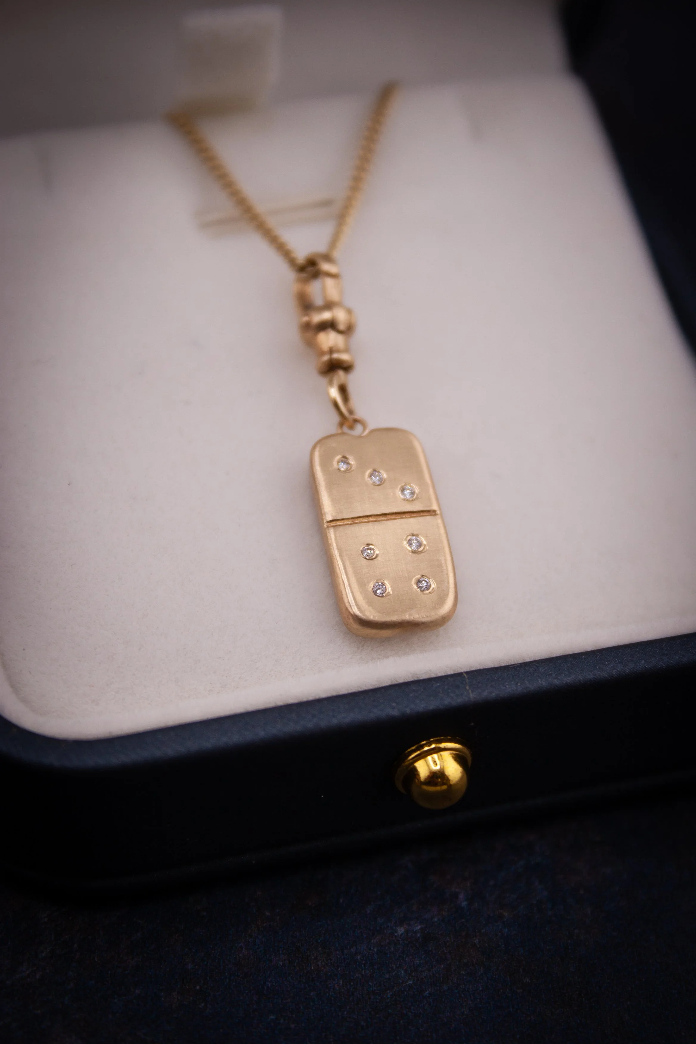 The thick set pendant hangs from a swivel clasp which can be clipped on and off of your favourite chain with ease.